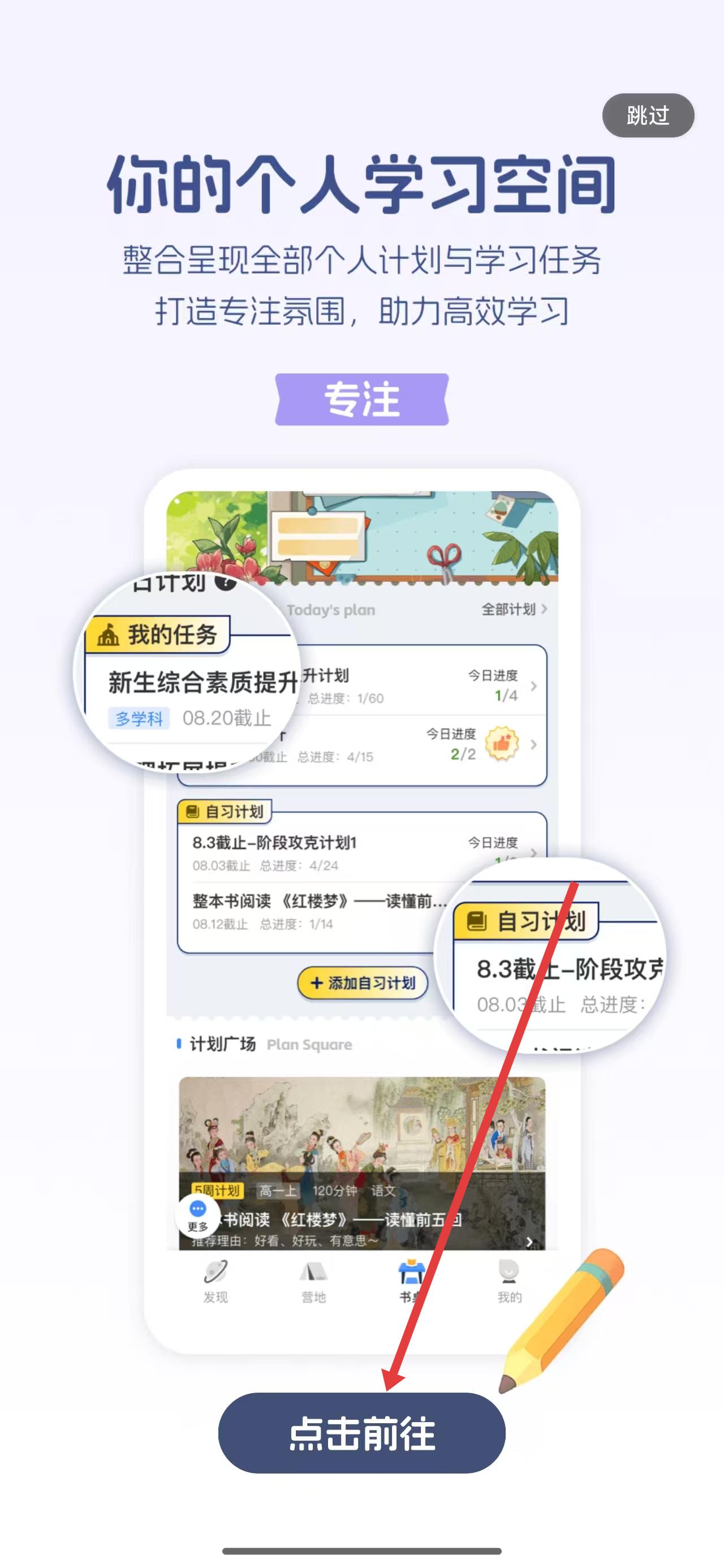 2、在升学e网通使用引导页面中,可以点击下方点击前往按钮,进入到app内部。