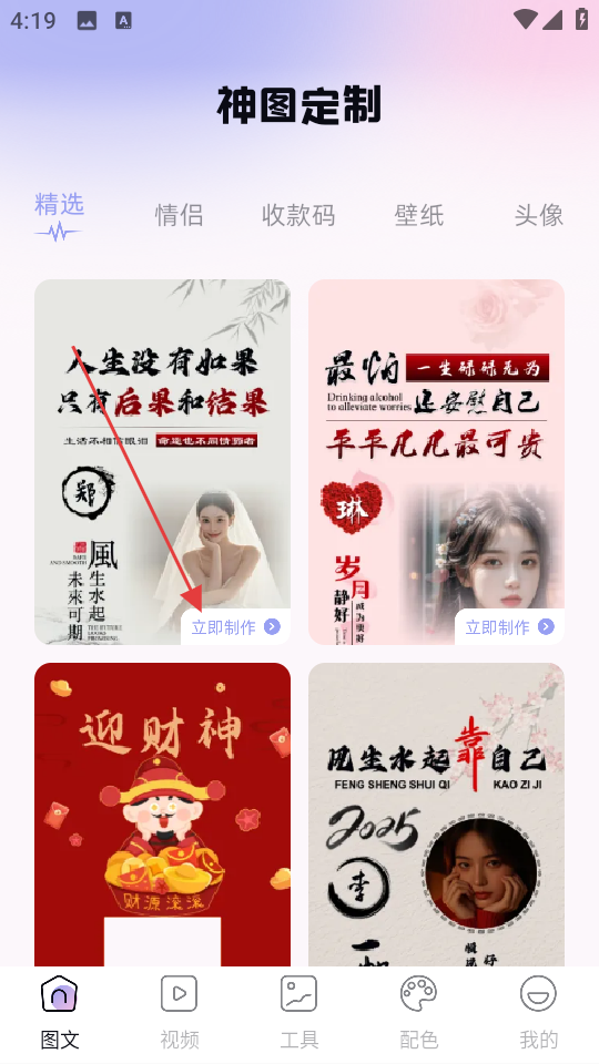 1、在神图定制页面,选择喜欢的模板,点击立即制作。