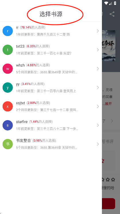 6、选择你想要使用的书源,这里推荐章节多的