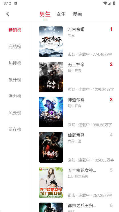 4、您可以选择浏览阅读排行榜,查看当下的火爆书籍
