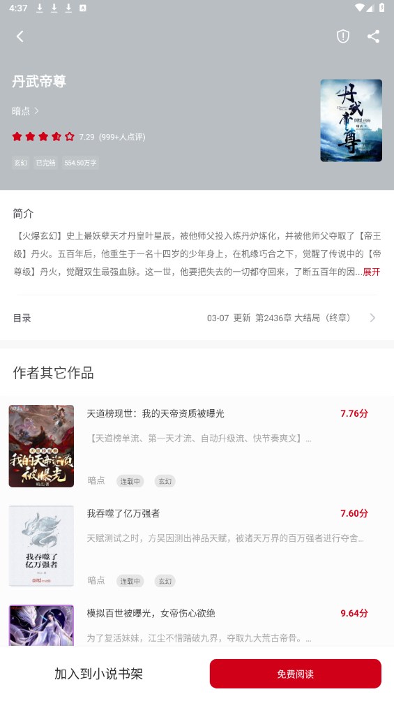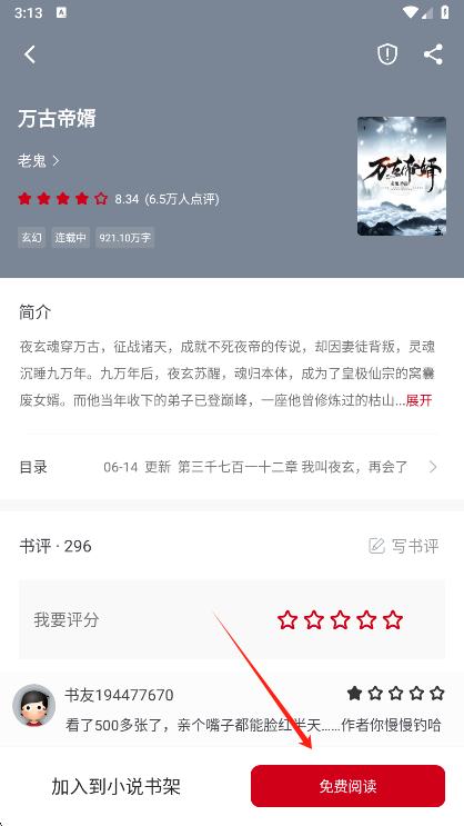 5、点击一本你想看的,进入详情页,选择免费阅读