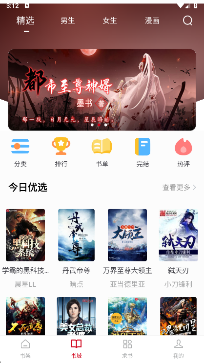 3、点击书城,您可以浏览到海量的小说