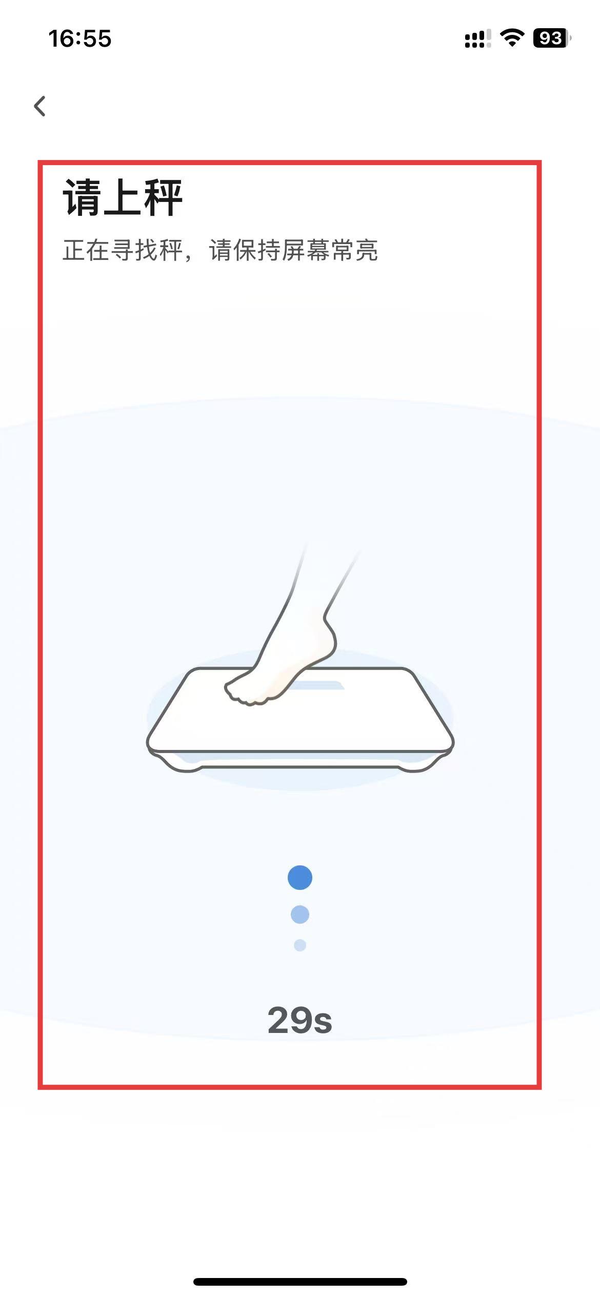 3、点击绑定体脂秤后,保持手机蓝牙开启,站在体脂秤上,等待APP搜索并连接体脂秤,即可成功连接。