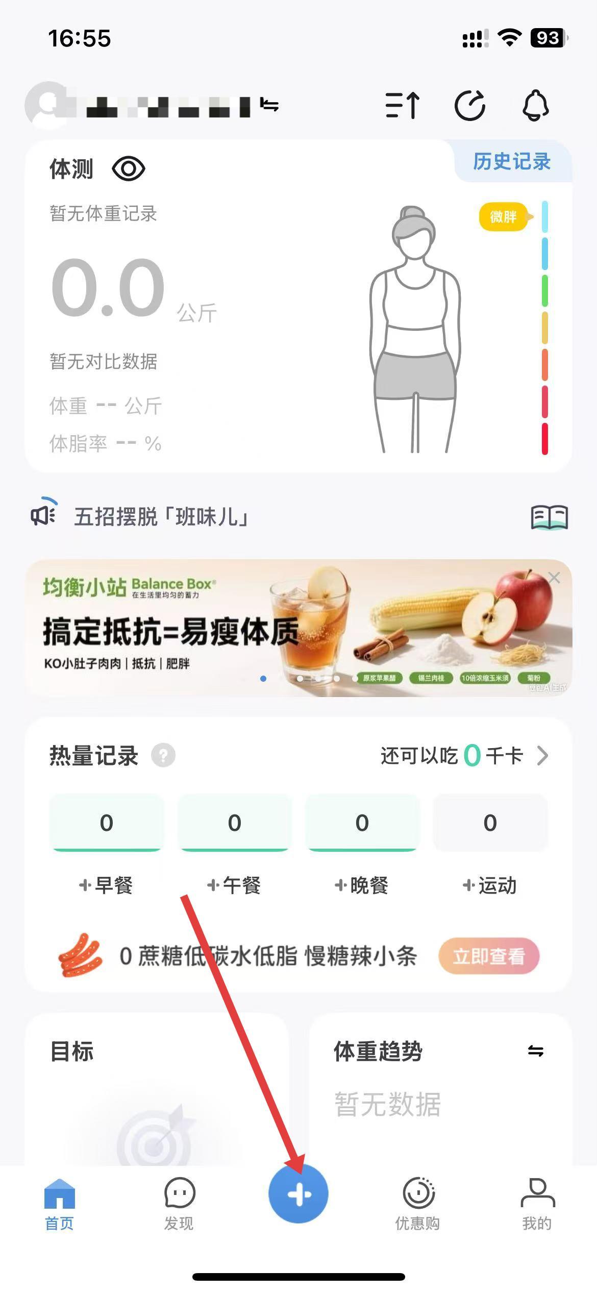 1、打开与0k0k体脂秤对应的APP,点击首页底部中间的+号按钮,进入添加设备相关功能界面。