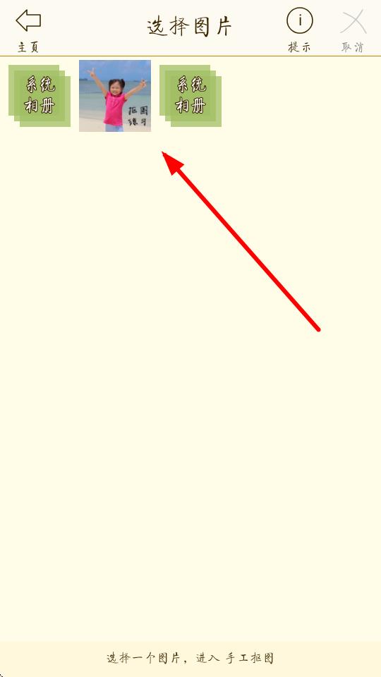 2、在选择图片界面,从系统相册选取要进行抠图的目标图片。