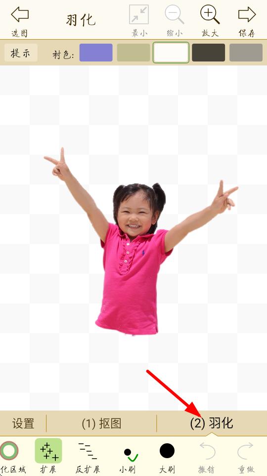 4、完成抠图处理后,点击2羽化选项对抠图边缘进行优化。