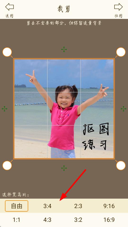 3、裁剪界面选合适宽高比,对图片进行裁剪调整。