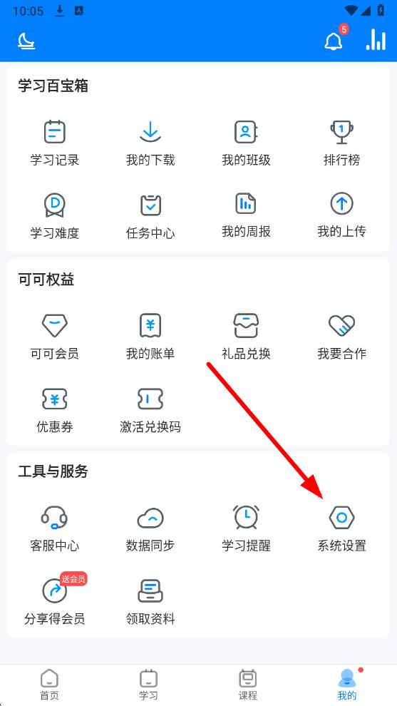 2、在个人页面中,下滑找到工具与服务板块,点击其中的系统设置选项,进入设置界面。