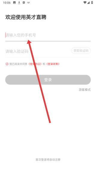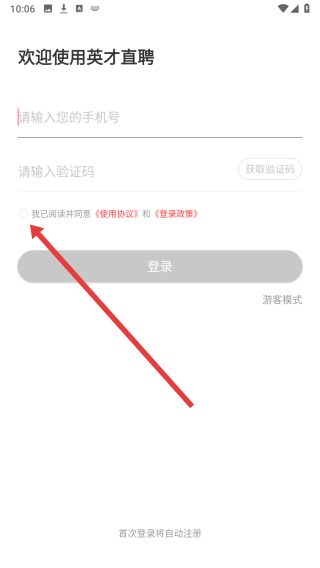 2、在进入到登录页中后,首页需阅读完协议后点击勾选按钮同意。