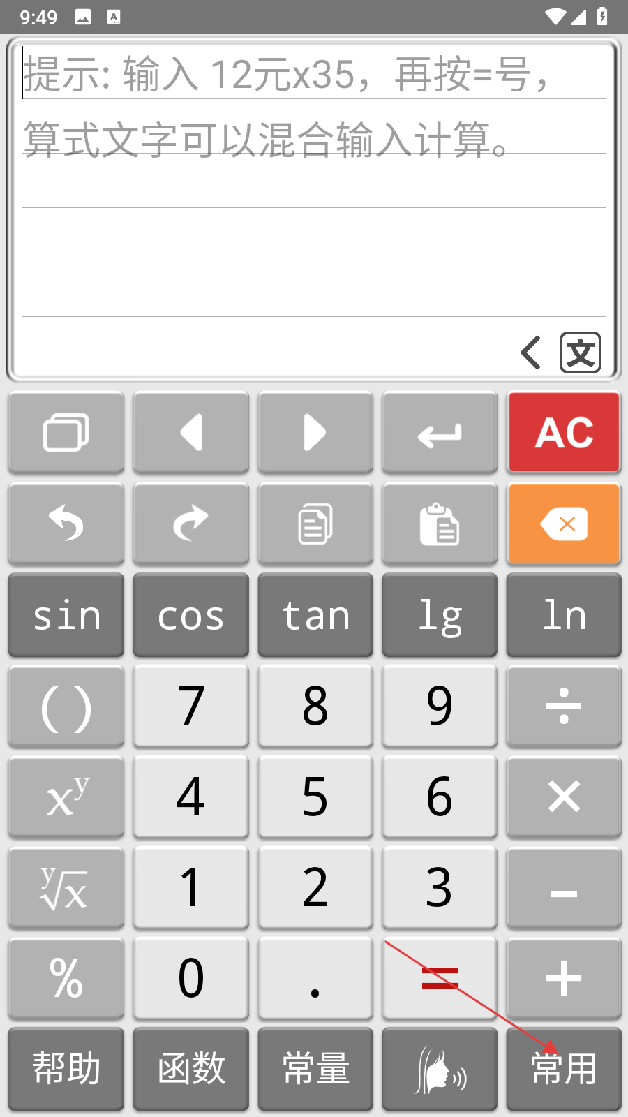 1、打开计算管家应用,在计算器主界面点击右下角常用按钮。