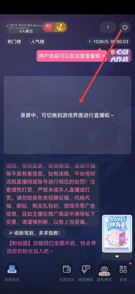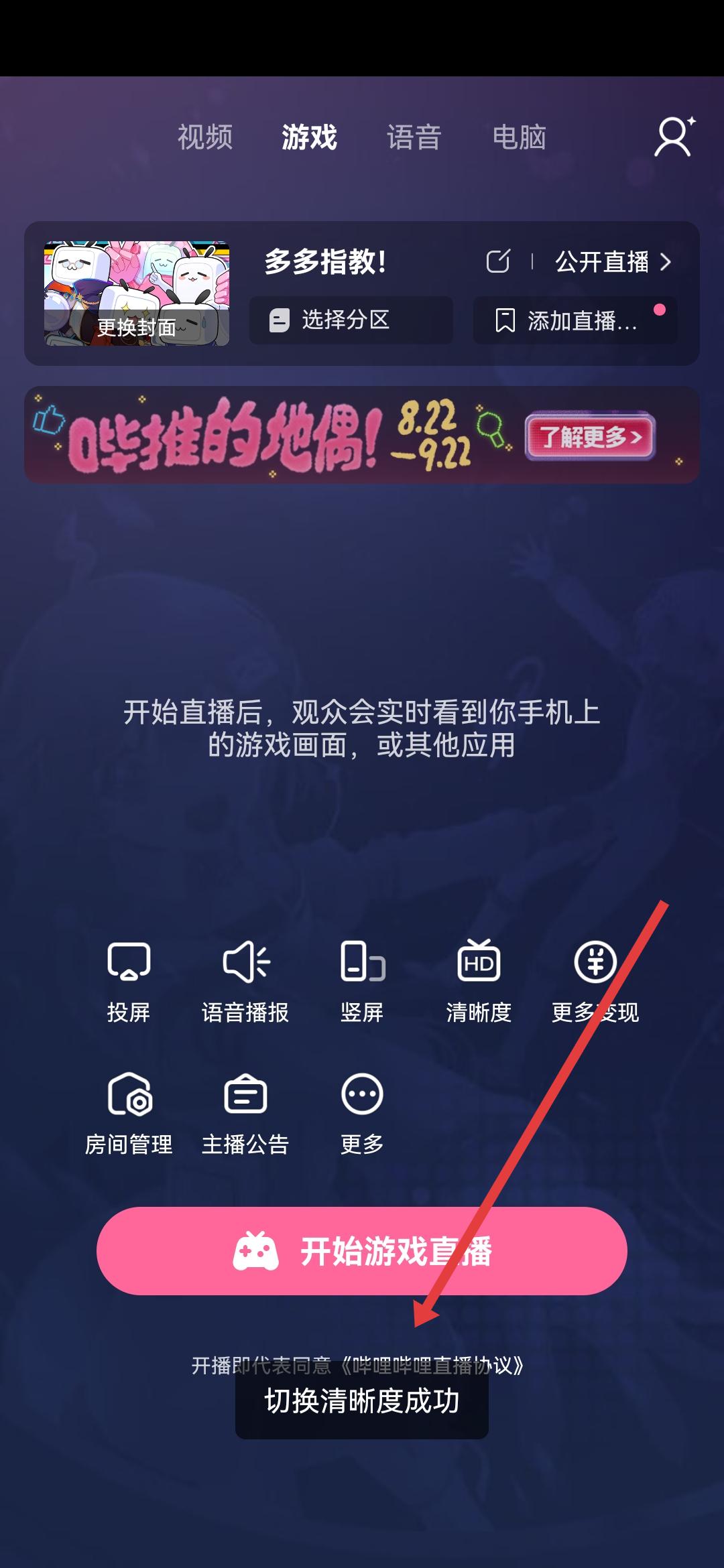 4、此时可点击开始游戏直播,进入直播的界面,直播将以设置好的画质呈现。
