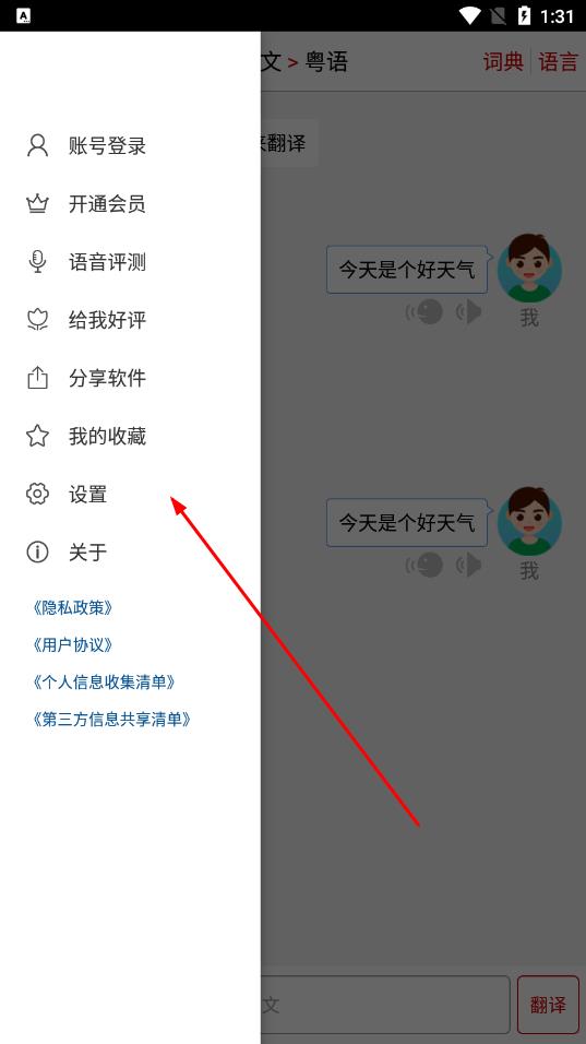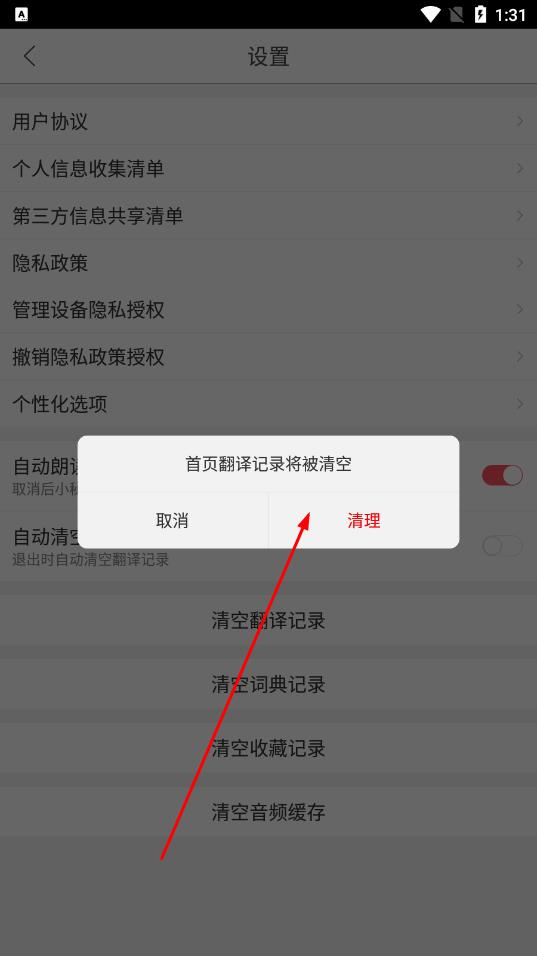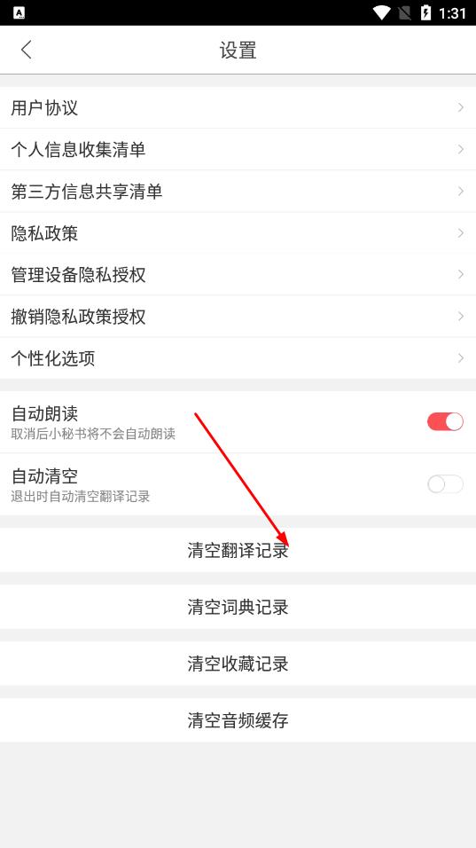 3、在设置页面中,找到清空翻译记录选项并点击。