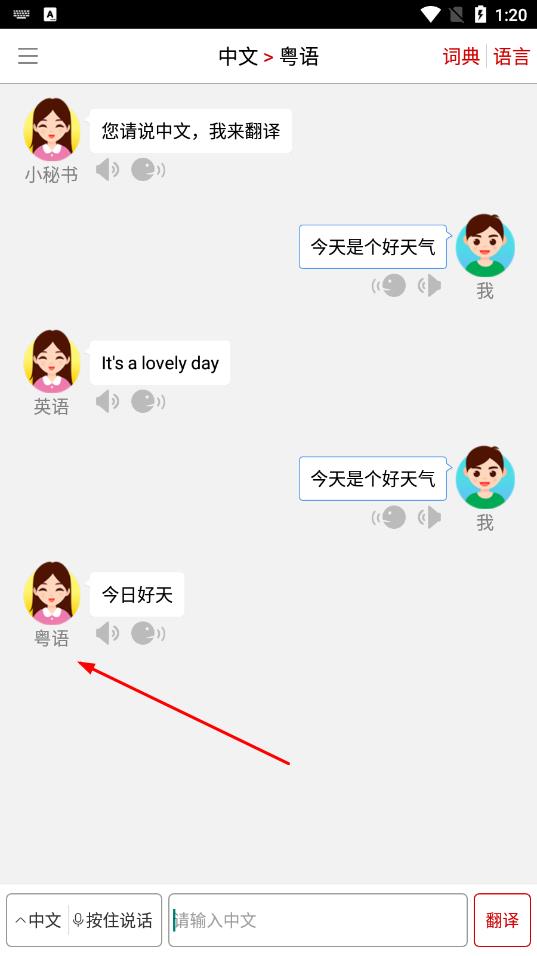 8.点击对话框可以重复收听对话的发音内容,翻译记录全不错过。