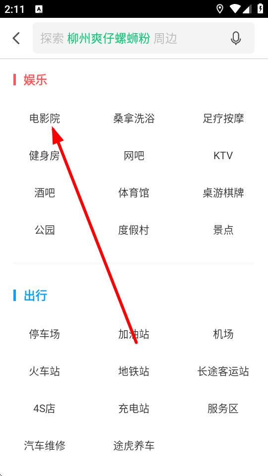 1、打开凯立德导航APP进入主界面,点击探索周边找到想去地点,比如点击电影院。