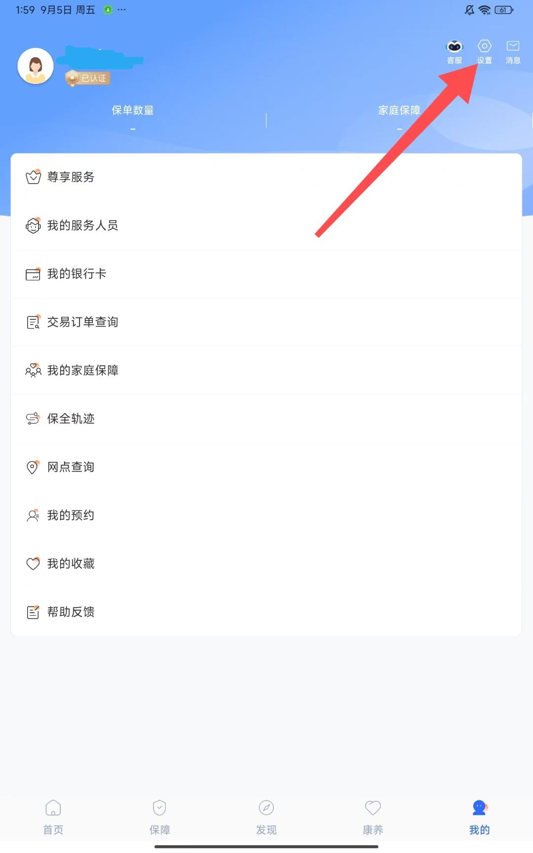 2、在我的页面右上角,点击设置图标进入设置界面。