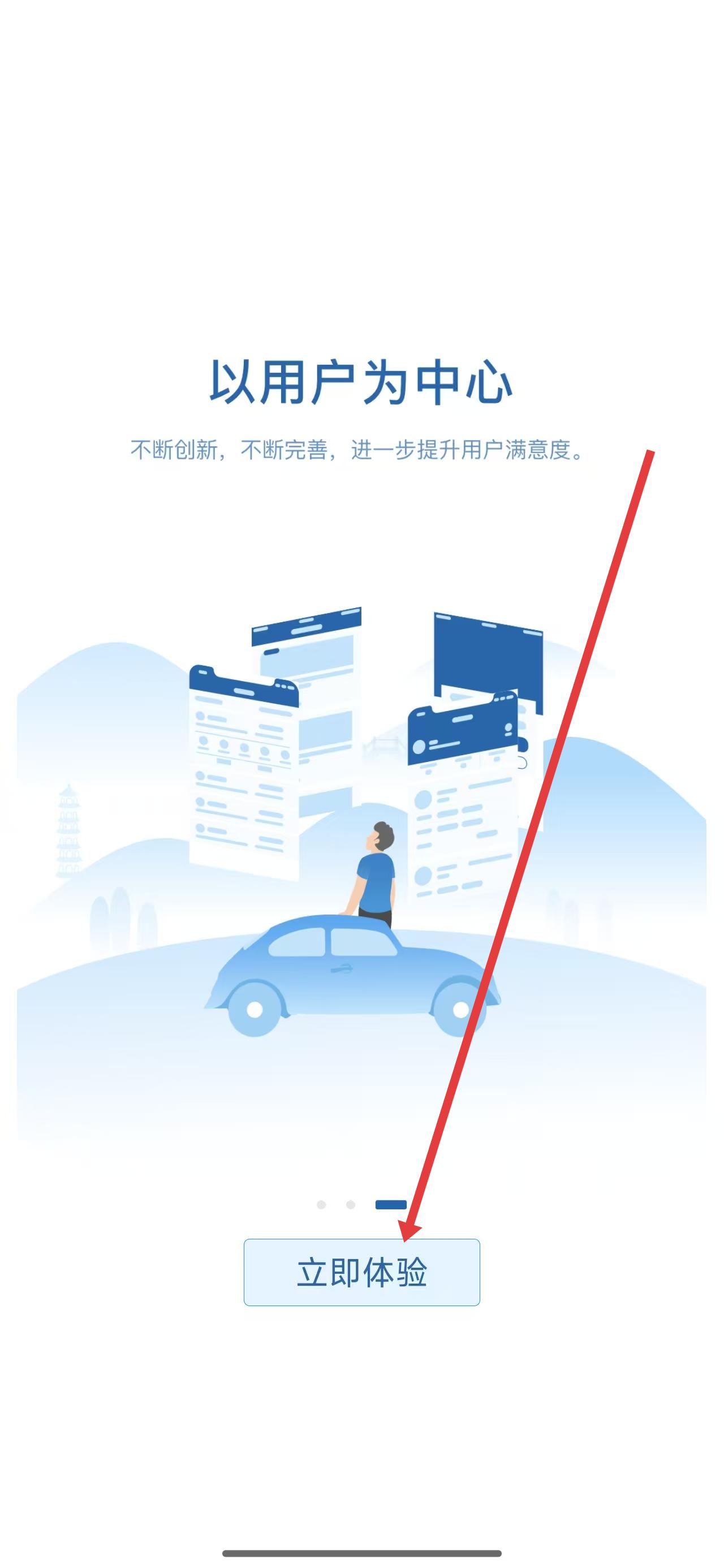 1、在app使用引导页中,点击立即体验按钮,进入使用。