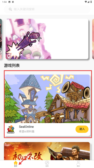 1、打开APP,在首页可看到游戏列表,如希望ol资料篇,点击进入可进入游戏。