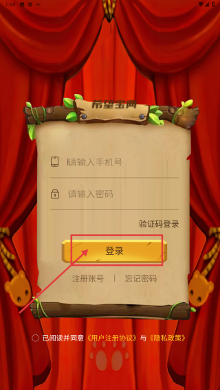 4、在登录界面,输入手机号和密码,勾选阅读并同意相关协议后,点击登录按钮,完成账号登录操作。