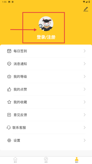 3、点击底部我的选项,进入个人页面,点击登录/注册按钮,进入登录界面。