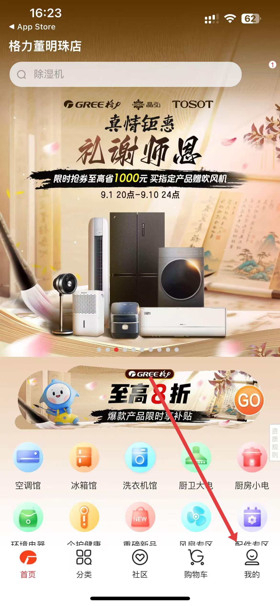 1、打开格力董明珠店App进入首页后,点击底部导航栏最右侧我的选项进入个人中心页面。