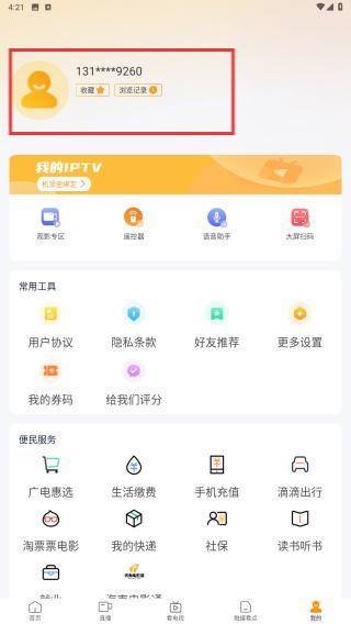 1、打开视听海南APP进入到首页内,点击右下角我的功能图标。