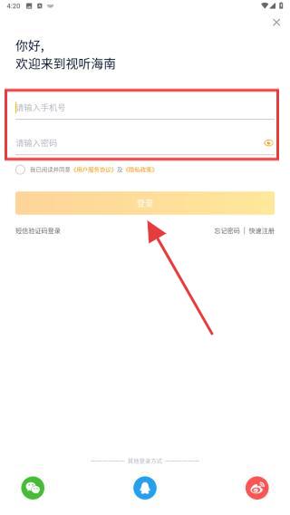 3、在登录界面中,输入手机号以及密码,并勾选用户协议与隐藏政策再点击登录即可。
