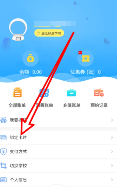1、进入住理,点击【绑定卡片】