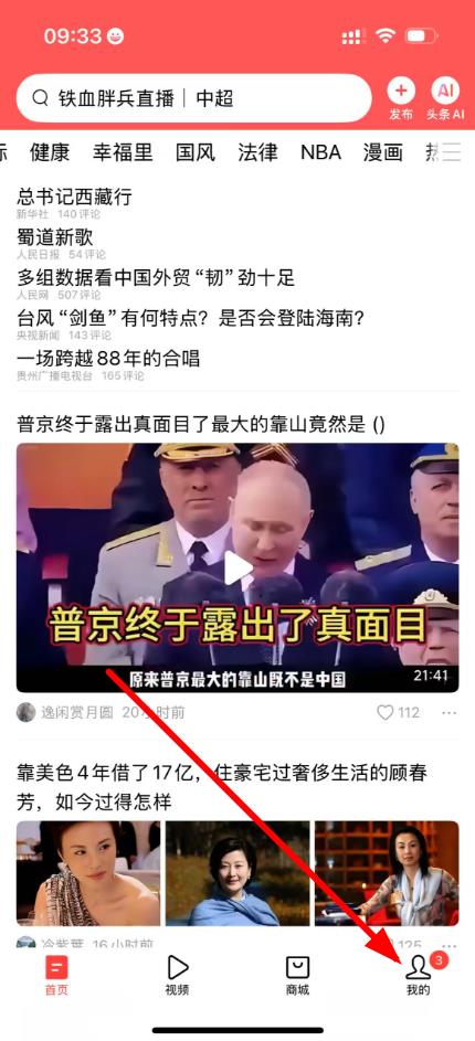 1、点击今日头条底部导航栏中的我的进入个人页面。