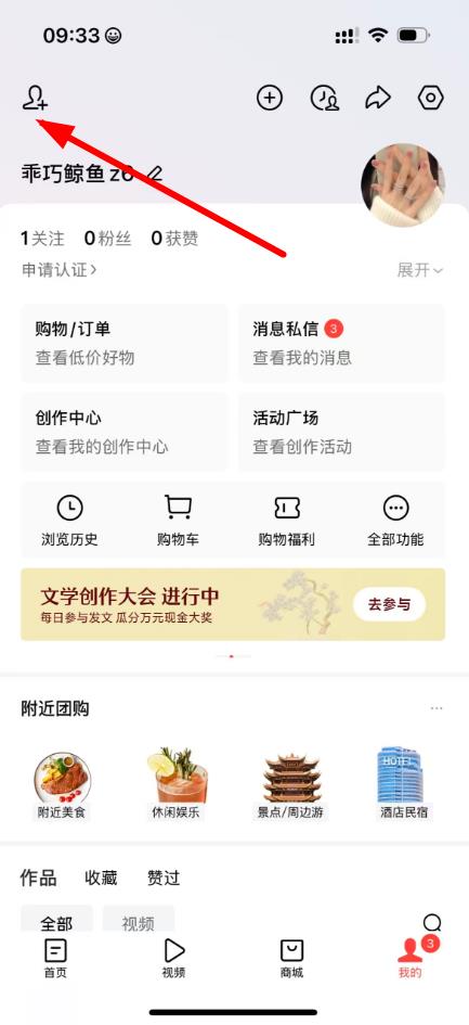 2、在个人页面左上角点击添加好友图标。