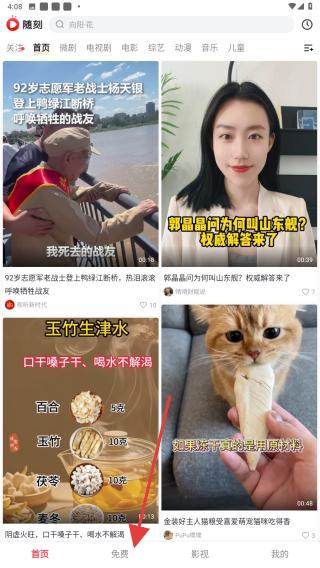 1、启动爱奇艺随刻APP进入到首页内,点击下方导航栏免费的图标。