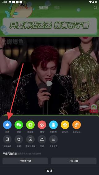 3、在视频播放的界面,找到并点击分享的按钮即可跳转该页面。