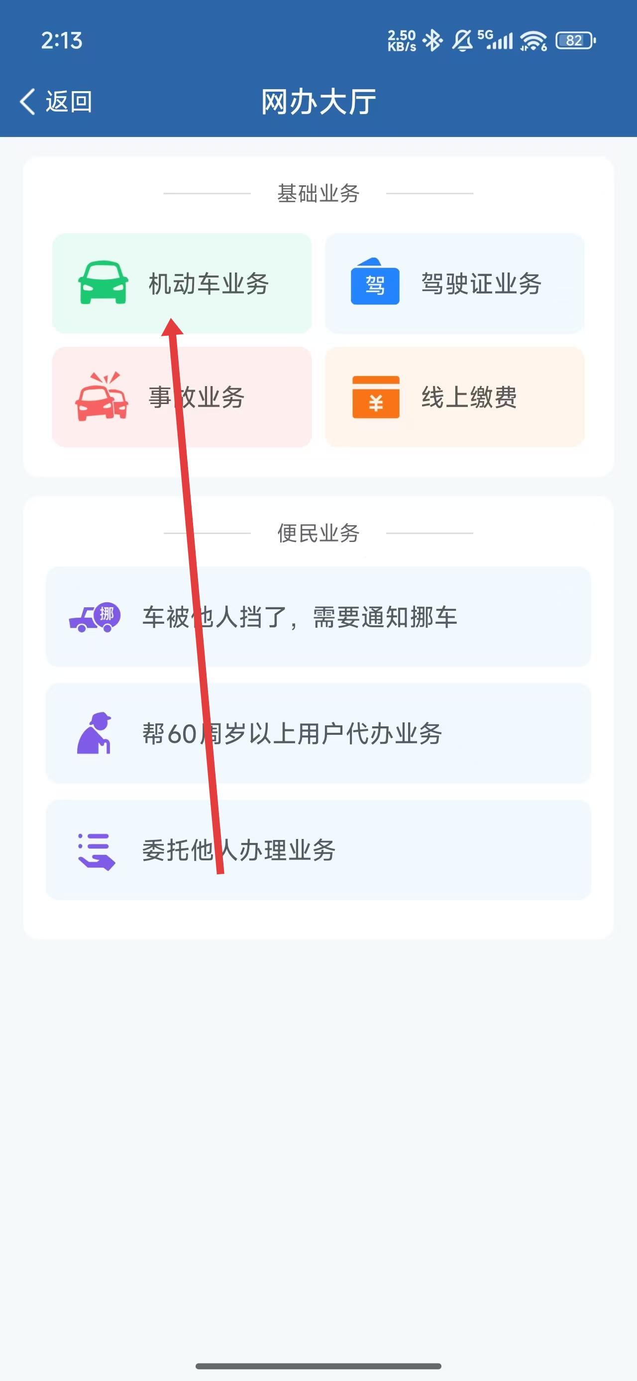 1、点击机动车业务选项,可以进入查看相关业务信息。