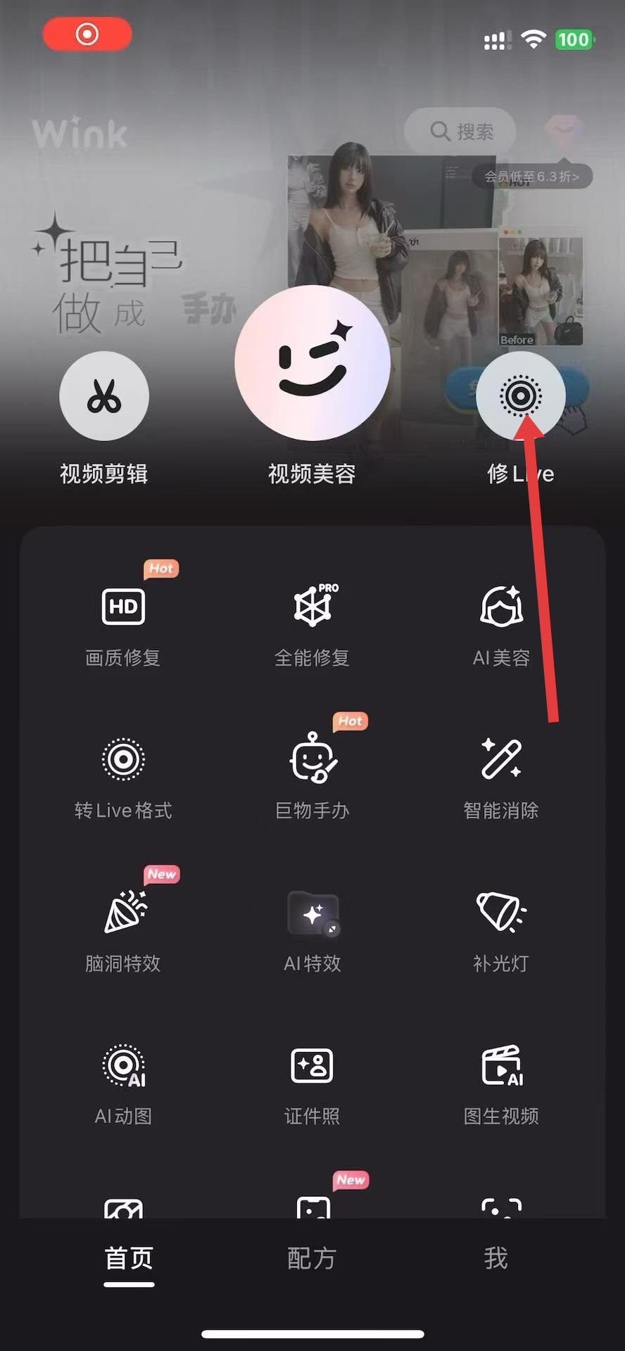 1、打开Wink App,进入首页界面,点击修Live选项。