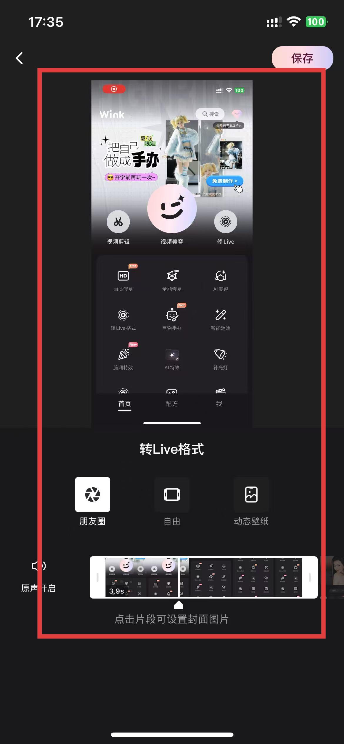 4、编辑完成后,点击界面右上角的保存按钮,即可完成修live图。