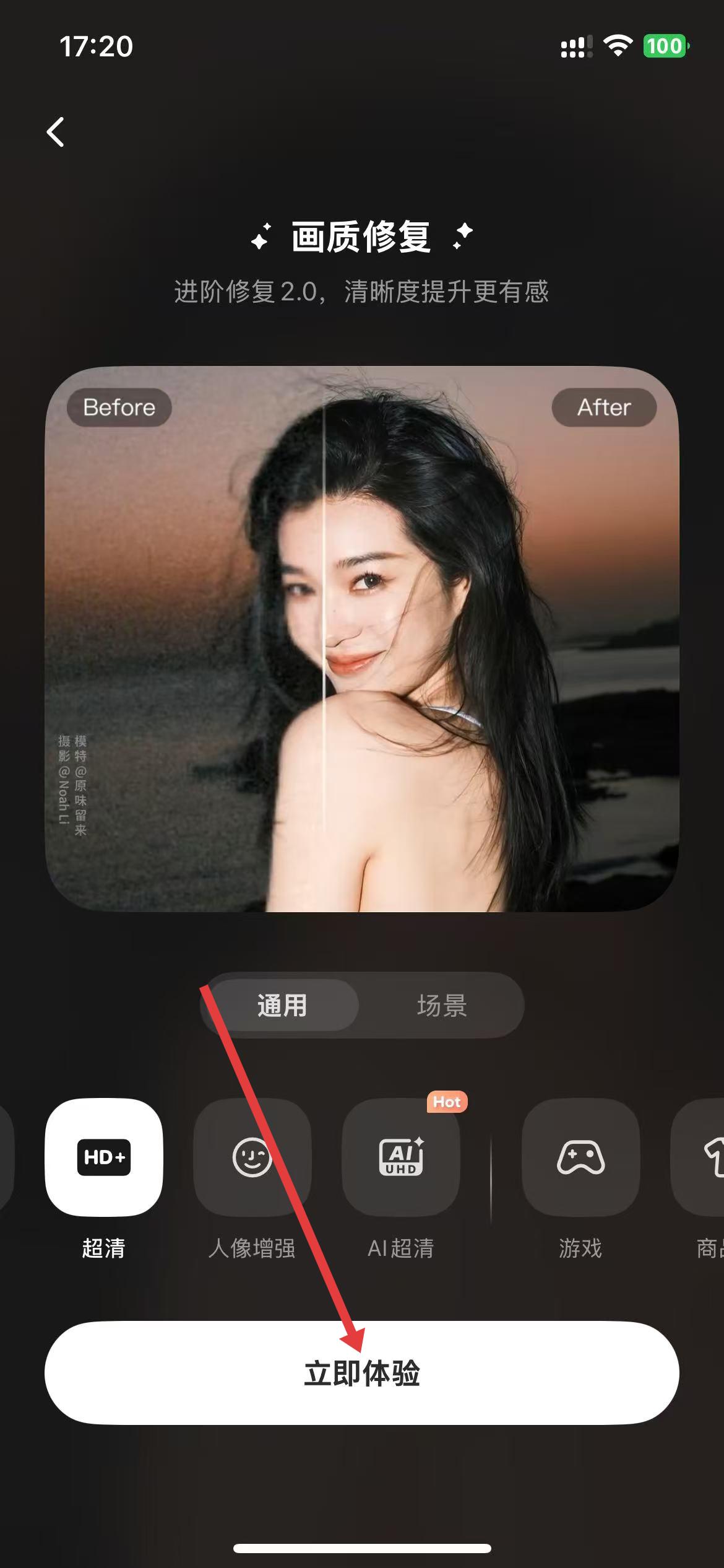 2、点击后跳转画质修复页面,点击下方立即体验。