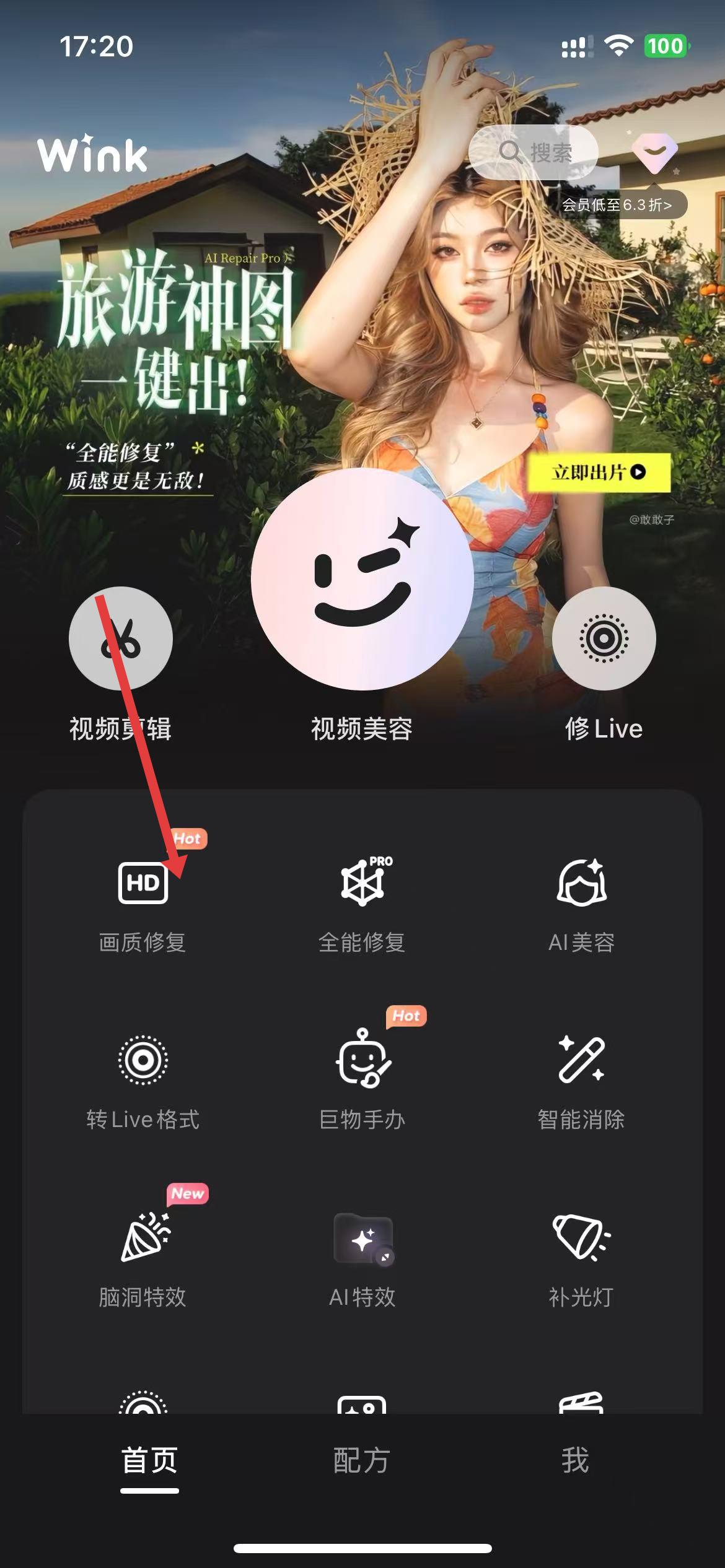 1、打开Wink App,进入主界面,点击画质修复选项。
