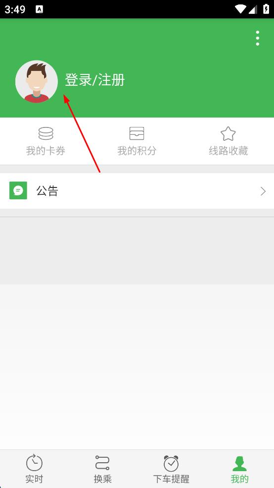 3、在个人中心页面,点击“登录/注册”选项,进入登录页面。