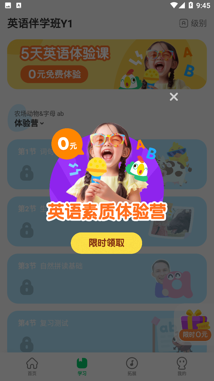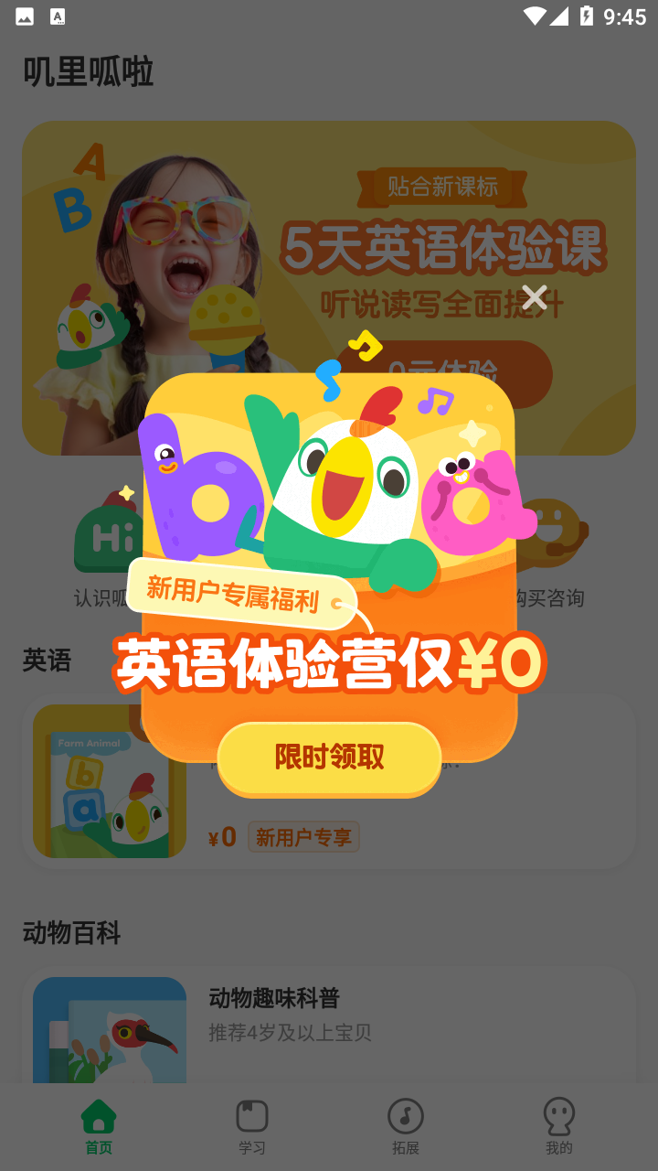 叽里呱啦是一款由承承网络科技开发的针对2-8岁儿童提供的专注于英语启蒙的学习软件,旨在“让孩子爱上英语”。英语启蒙作为儿童教育中备受关注的一部,软件结合缜密研究,为孩子提供专业、有效的英语教育产品,联合哈佛大学领衔资深教育团队,针对还在的爱玩天性,用动画和实景教学帮助孩子爱上英语,爱上阅读!家长早教更轻松!