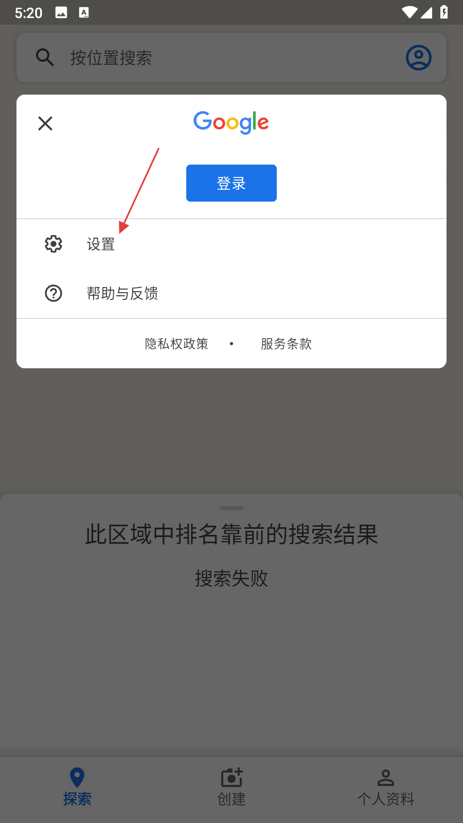 2、在弹出的菜单中,点击设置选项,进入谷歌地图的设置页面。
