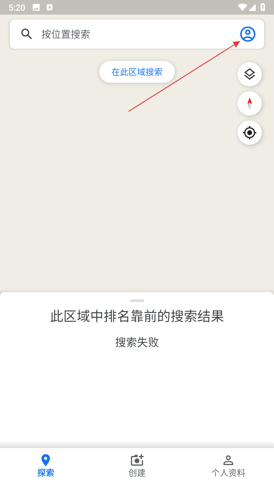 1、打开谷歌地图应用,点击界面右上角的个人资料图标,弹出包含设置等选项的菜单。