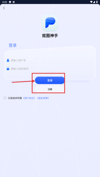 4、在登录页面,输入用户名和密码,勾选已阅读并同意相关协议后,点击登录按钮完成账号登录,也可选择注册新账号。