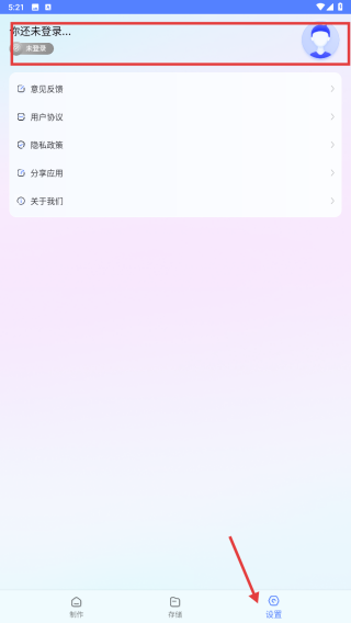 3、点击底部设置选项,进入设置页面,能看到意见反馈、用户协议等选项,若未登录,可点击登录入口。