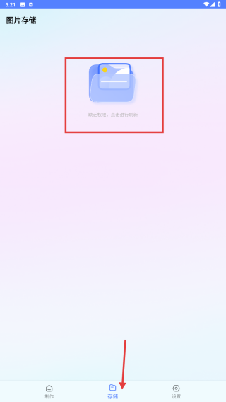 2、点击底部存储选项,进入图片存储页面,可查看已存储的图片若无存储则显示相关提示。