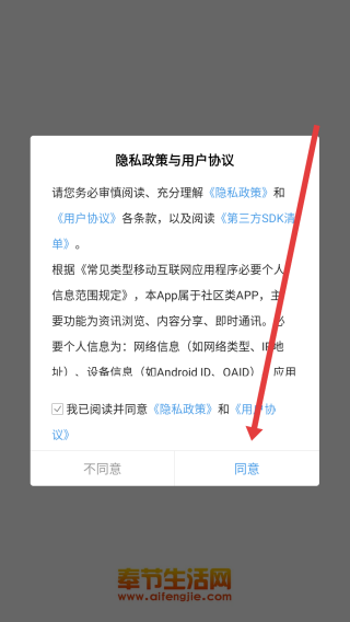 1、在打开app后,点击弹窗中的同意按钮后进入使用app。