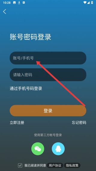 4、在跳转到账号密码登录页面后,可以点击输入框依次输入账号密码完成登录操作。