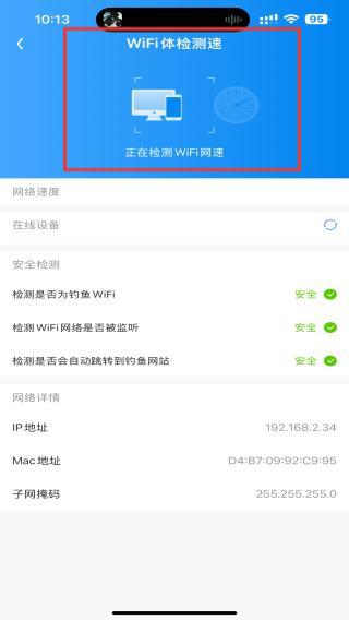 3、点击后,即可开始进行安全体验检测wifi速度。
