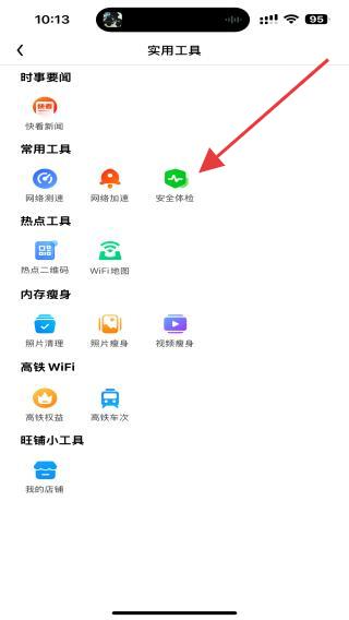 2、进入实用工具的页面内,点击常用工具中的安全体检即可跳转至该页面。