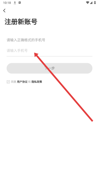 4、在进入到注册新账号页面中,可以点击输入框填写手机号以便获取验证码完成注册。