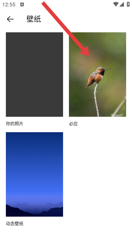 3、在壁纸选择的页面,需要选择壁纸的来源,点击对应的壁纸预览图。
