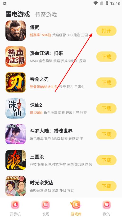 4、安装成功后,在游戏库中对应游戏名称右侧的按钮会变为打开,点击即可进入游戏。